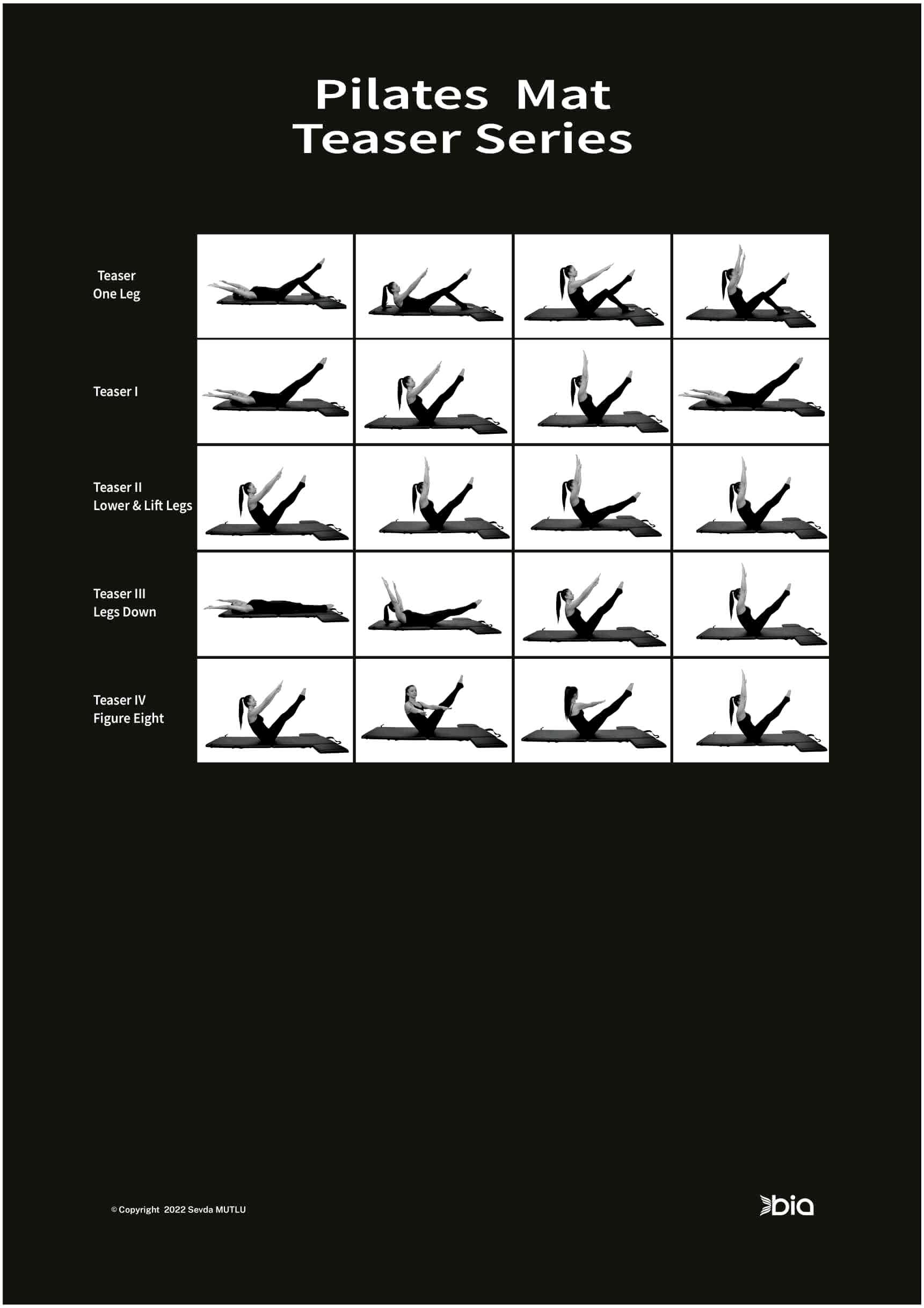 Altıncı bölüm, Joseph Pilates tarafından oluşturulan ve tanımlanan mat egzersizlerini kapsamaktadır. Bu egzersizler ilave ve değişiklik yapılmadan, Joseph Pilates tarafından öğretilenlerle aynıdır.